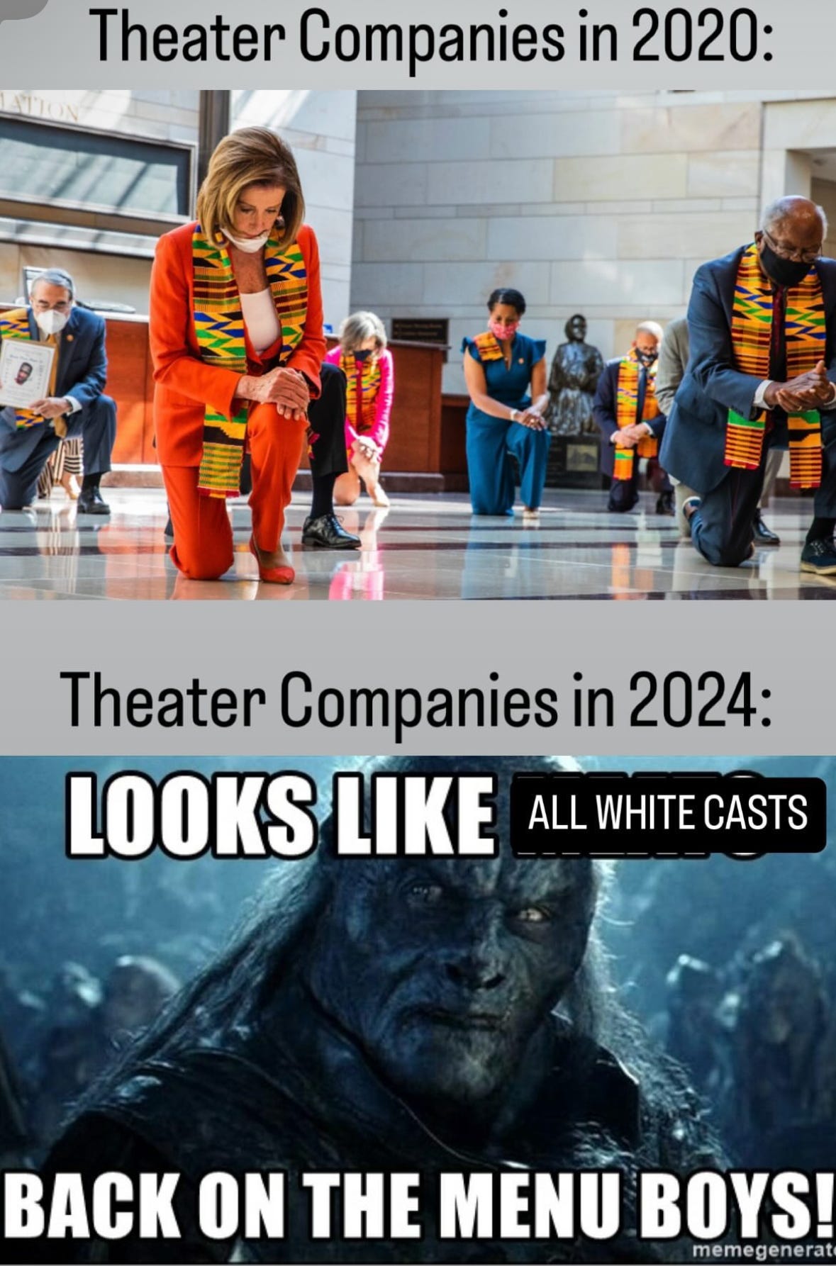 Needless to say, when it was found out that this production was not as authentic as it claimed to be, shit went down. Nearly 300 members of the Chicago Theatre community gathered at Victory Gardens Theatre (the irony isn’t lost on me) to have a town hall called “The Color Game: Whitewashing Latinx Stories”4, to discuss the lack of roles available to BIPOC actors (déjà vu?) and how even roles written by and for artists of color were still going to white actors. 5 The event was organized by the Chicago Alliance of Latinx Theatre Artists to discuss the issue and propose some practical solutions. More than 2,000 people followed the discussion on a live Facebook stream on top of those attending in person. This event was also created in response to Marriott’s very white production of Evita, produced earlier that same year.6